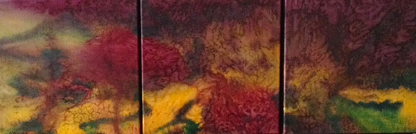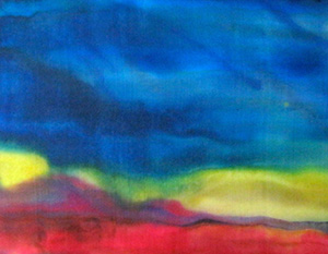 Painting on silk is another way for me to explore my love of experimentation.   Traditional silk dyes provide brilliant pure colours that mingle and blend in totally unpredictable ways.  I’ve also combined silk dyes with acrylics, changing the ultimate texture and feel of the painting, and presenting another new and challenging path to follow.